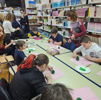 U prosincu su posebne odgojno-obrazovne odjele posjetile učenice 7. razreda i zajedno s učenicima posebnog odjela bojale drvca – ukrase za božićno drvce. Ukrasi su se prodavali na našem božićnom štandu.