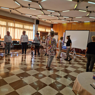 Nakon ugodnog prijema organizatorice IDEC-a Lile Anthopoulou otpočeo je trening koji vodi dramska pedagignja i kazališna glumica Ersi Niaoti. Poslije kraće prezentacije u kojoj nas je oraganizatorica upoznala s Pirejem, Atenom, Grčkom i programom tečaja u kojem ćemo sudjelovati, započeli smo s radom. Najprije smo se upoznali s ostalim sudionicima koji su došli iz Aragonije u Španjolskoj, a riječ je o osam polaznika škole za odrasle u kojoj se obučavaju za razne vještine, među ostalima i dramskim. Sudjelovala je i učiteljica engleskoga jezika iz srednje škole u gradu Carnikavi u Latviji. Bilo nam je iznimno zanimljivo surađivati s polaznicima koji nisu naše struke.