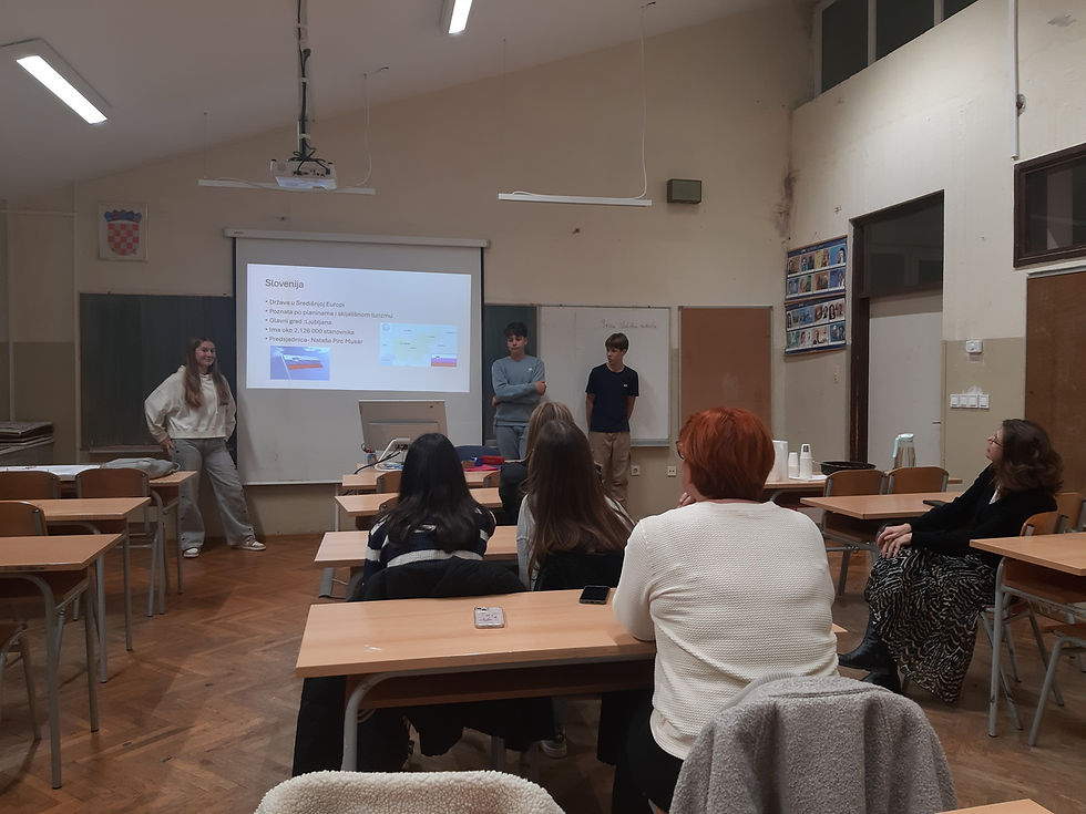 Učenici koji su sudjelovali u grupnoj mobilnosti za učenike u Osnovnu šolu Ivana Cankarja u Ljutomeru u Sloveniji prezentirali su tijekom studenog i prosinca 2025. svoju mobilnost i rad Europskog kluba na satovima razrednog odjela ostalim razredima u školi.